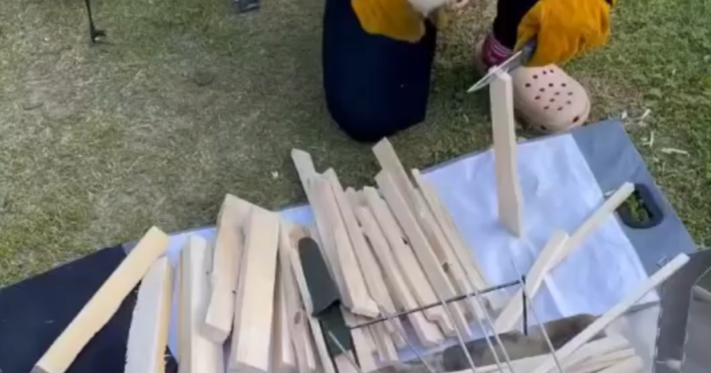 フェザースティックとは、薪の先端を薄く削り羽毛のような見た目で着火剤代わりに利用できるものです。